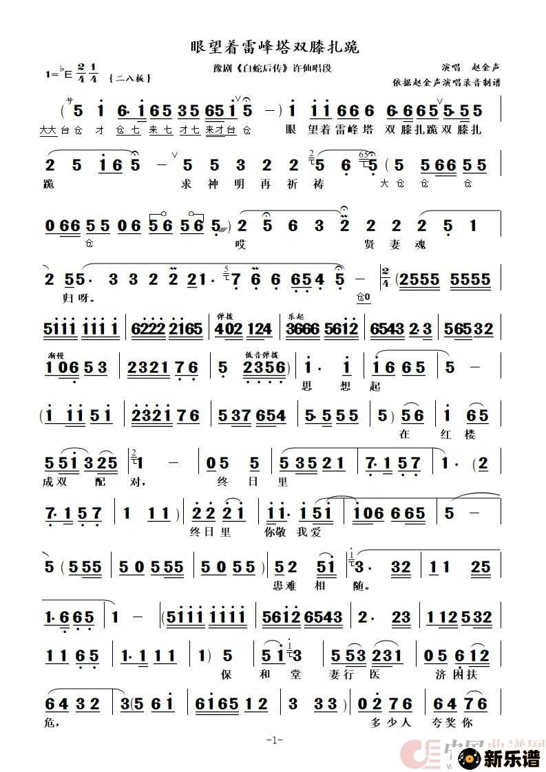 眼望着雷峰塔双膝扎跪/赵金声 白蛇后传 相关曲谱