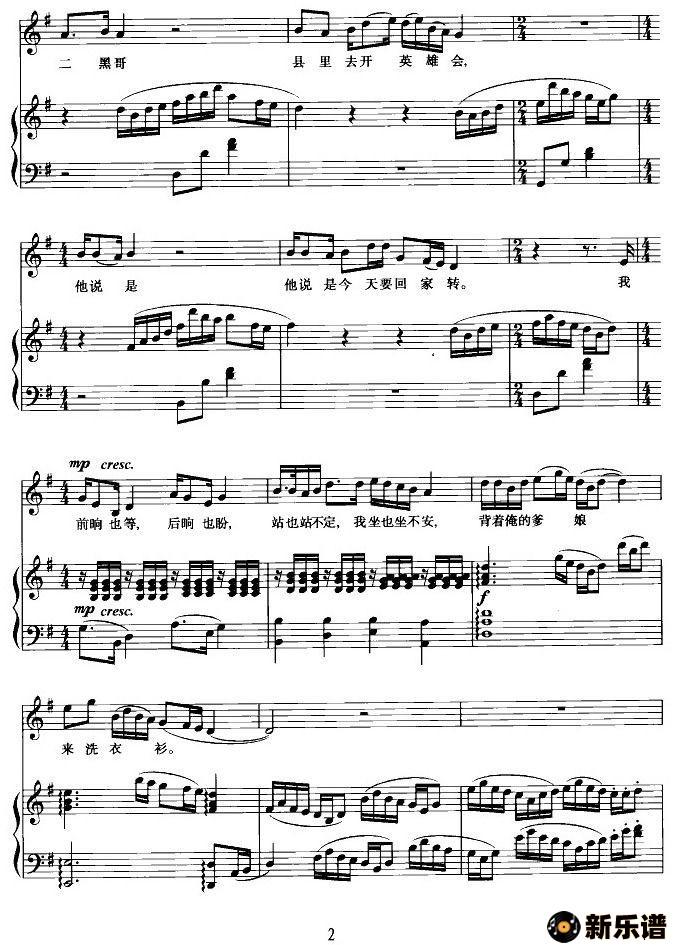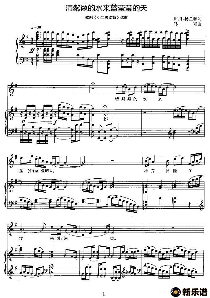 作词:田川 杨兰春 作曲:马可(歌剧《小二黑结婚》选曲、正谱)