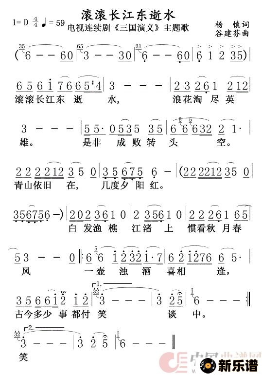《滚滚长江东逝水》最新曲谱 杨洪基