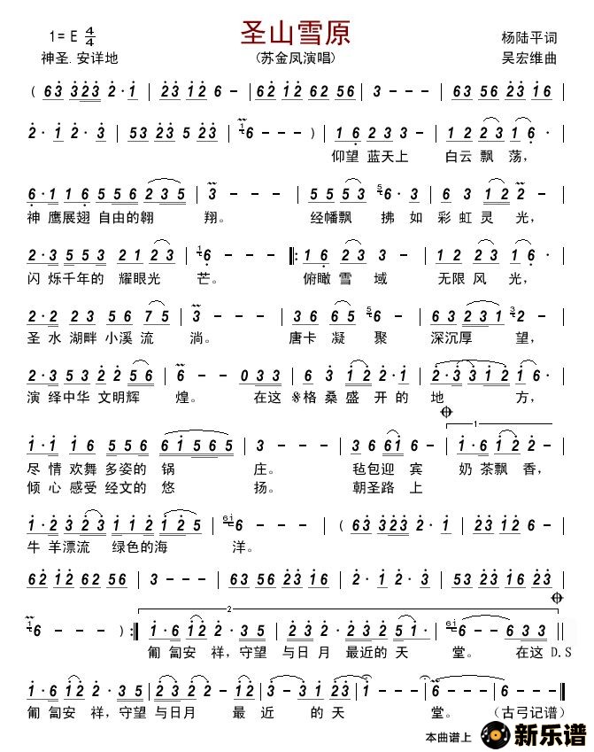 《圣山雪原 》最新曲谱 苏金凤-古弓制谱