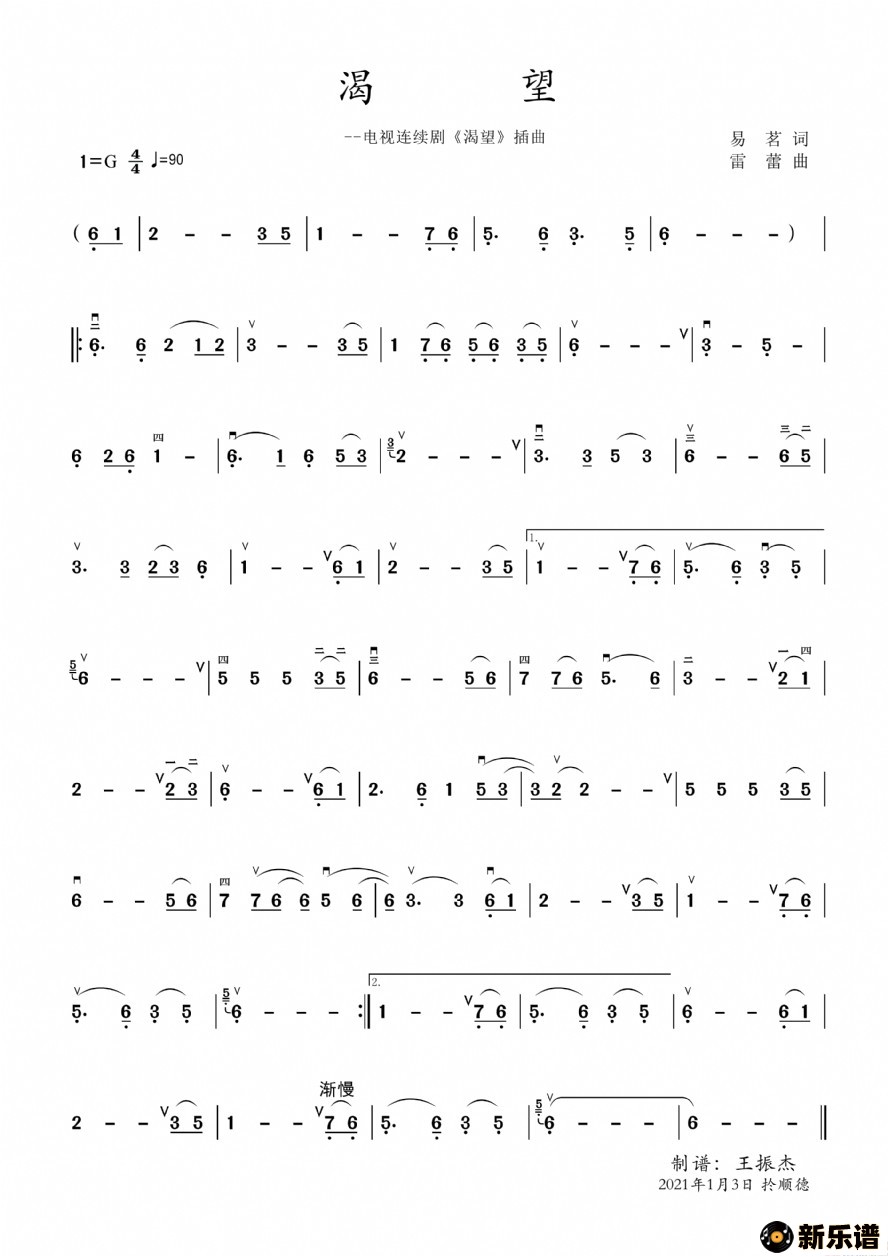 演唱的渴望(二胡演奏谱)(电视连戏剧《渴望》插曲)歌词,渴望(二胡演奏谱)(电视连戏剧《渴望》插曲)最新曲谱.