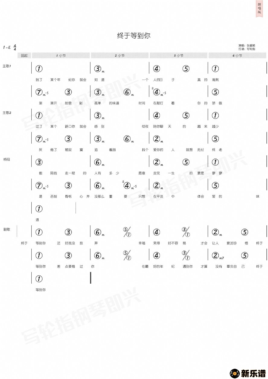 《终于等到你》最新曲谱 张靓颖