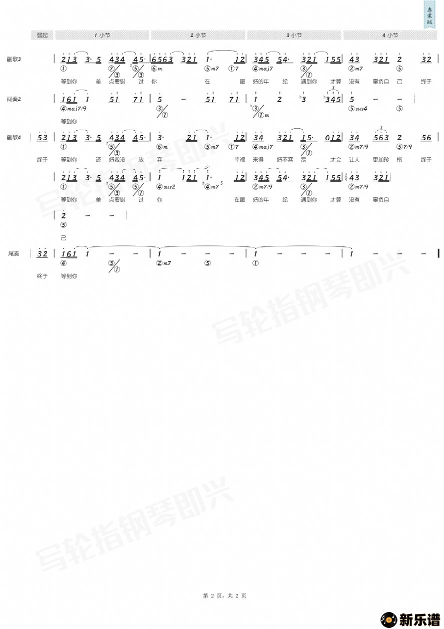 > 终于等到你最新曲谱