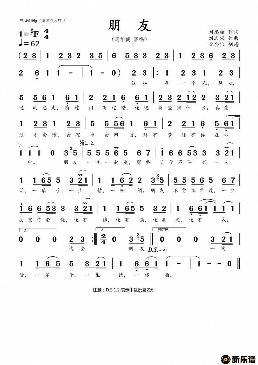 《朋友》最新曲谱 周华健-沈公宝制谱