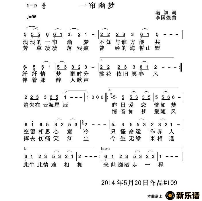 《一帘幽梦》最新曲谱 李国强 荷塘