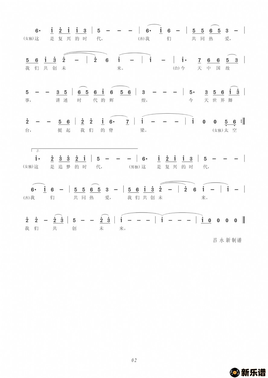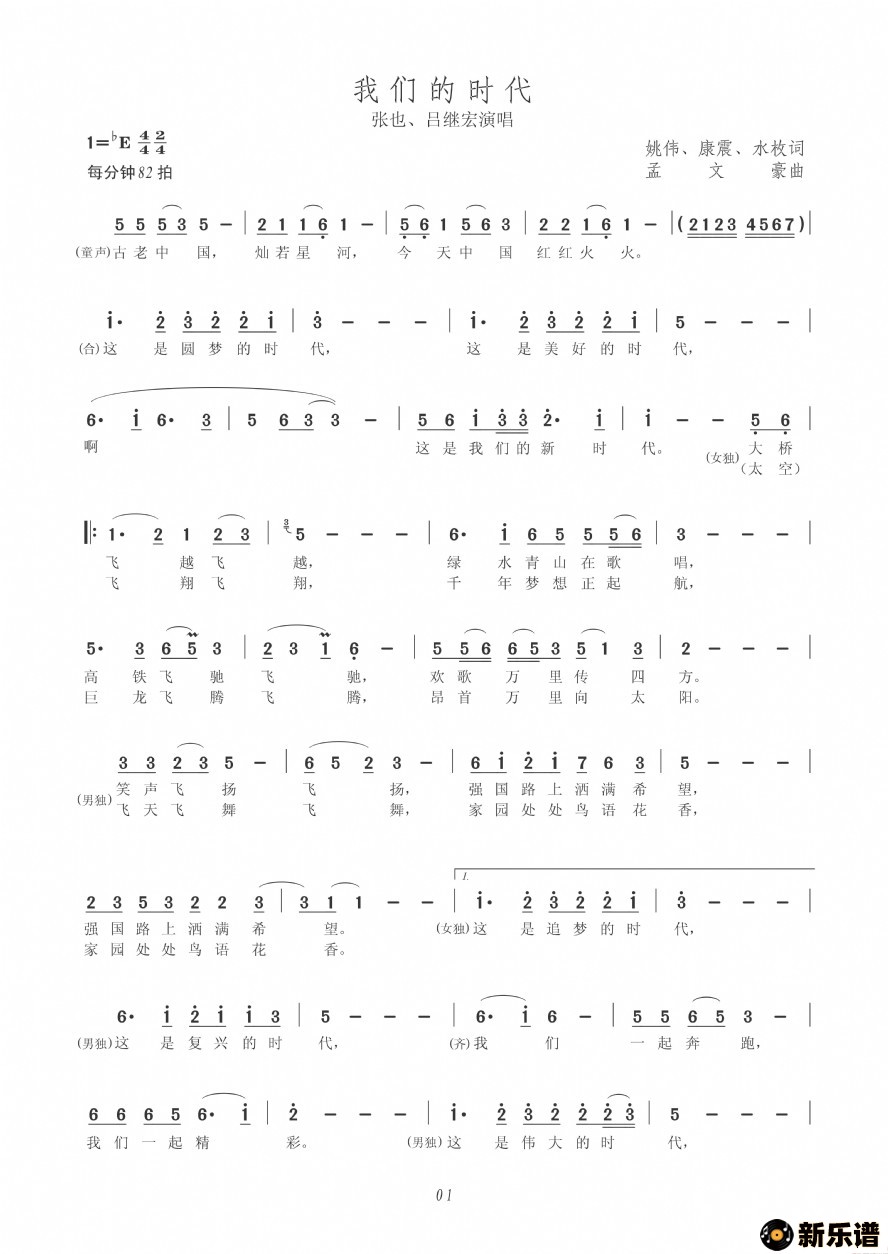 《我们的时代》最新曲谱 张也、吕继宏