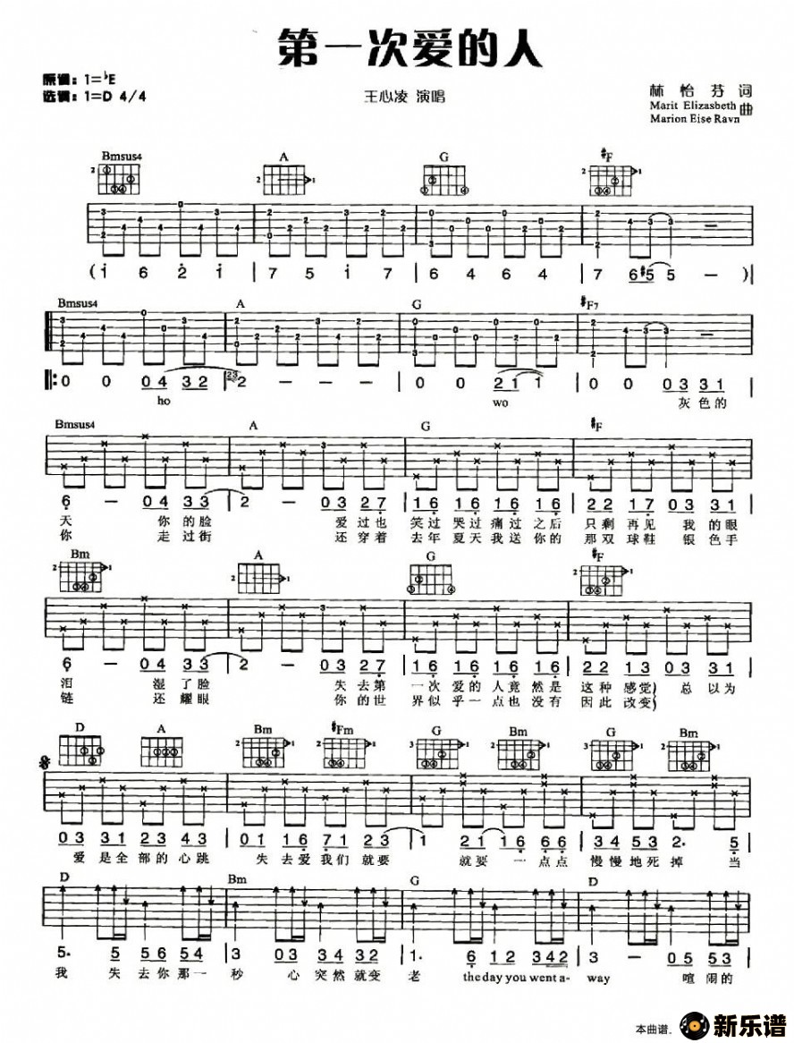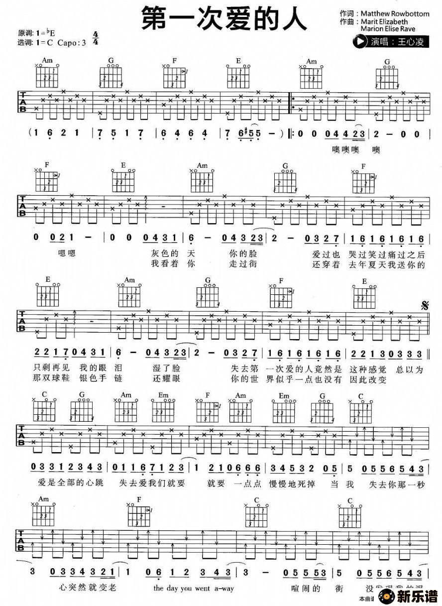 王心凌演唱的第一次爱的人歌词,第一次爱的人最新曲谱.