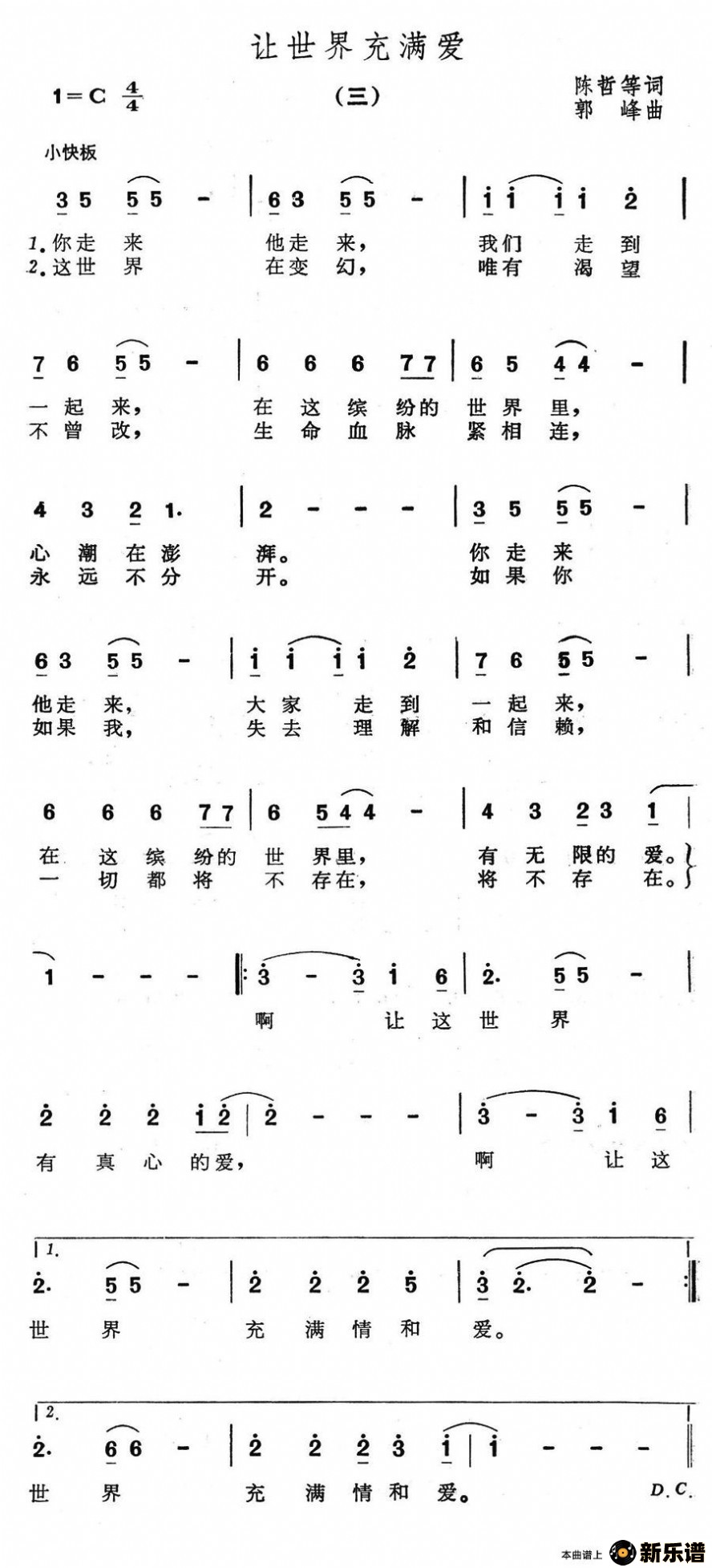 演唱的让世界充满爱歌词,让世界充满爱最新曲谱.