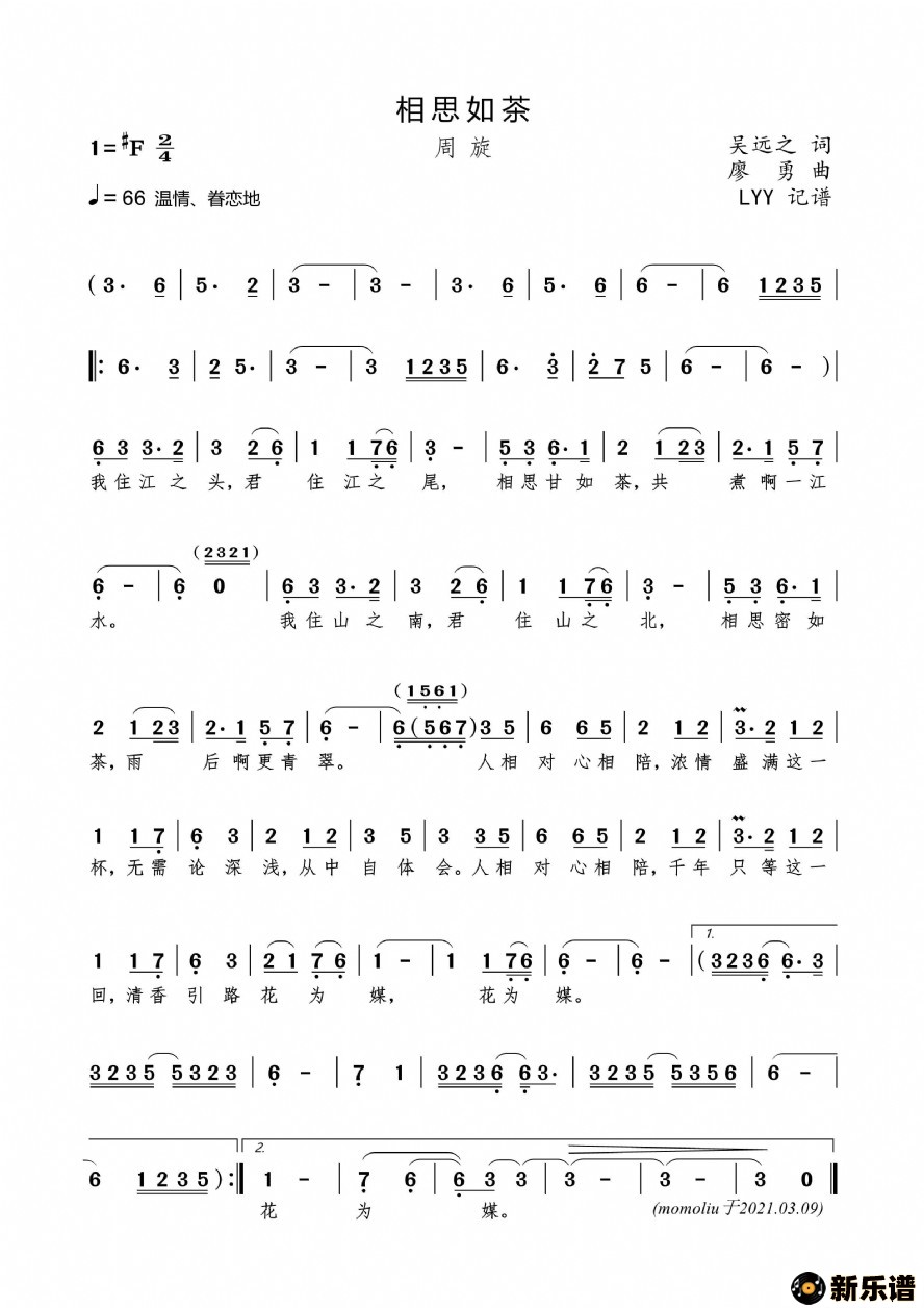 《相思如茶》最新曲谱 周旋-momoliu制谱
