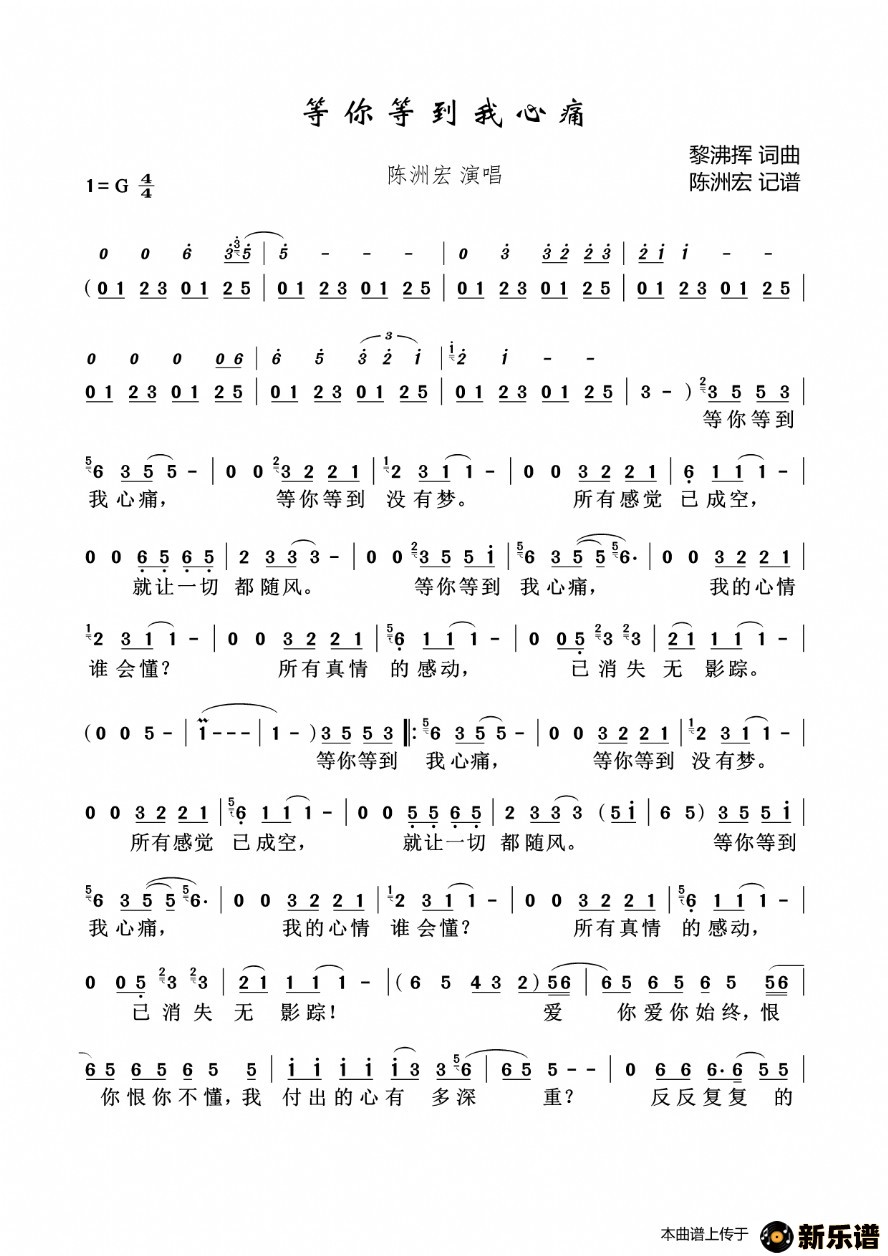 《等你等到我心痛》最新曲谱 -陈洲宏制谱