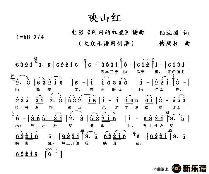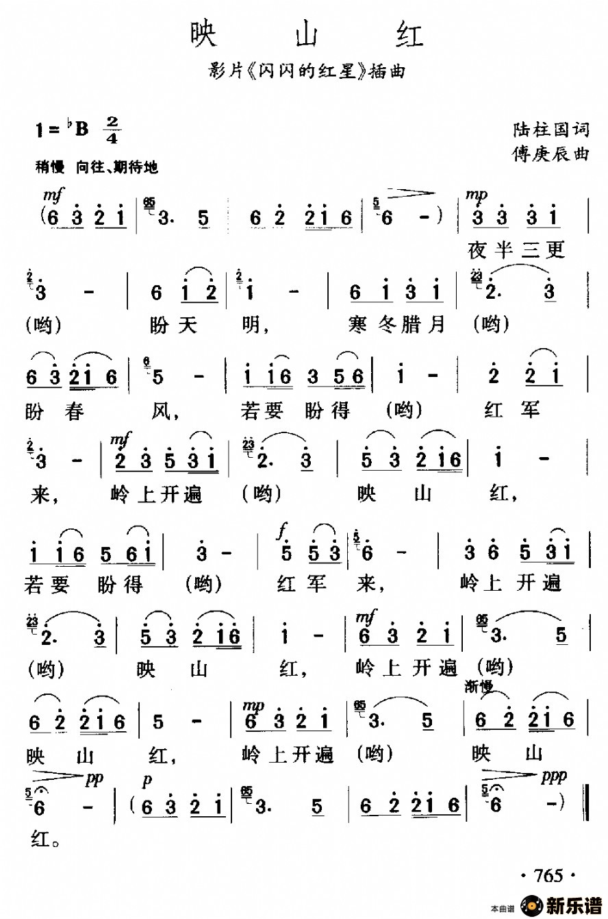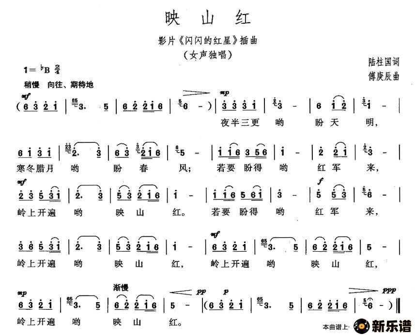 演唱的映山红(电影《闪闪的红星》插曲)歌词,映山红(电影《闪闪的红星》插曲)最新曲谱.