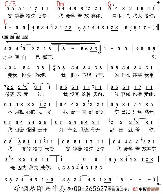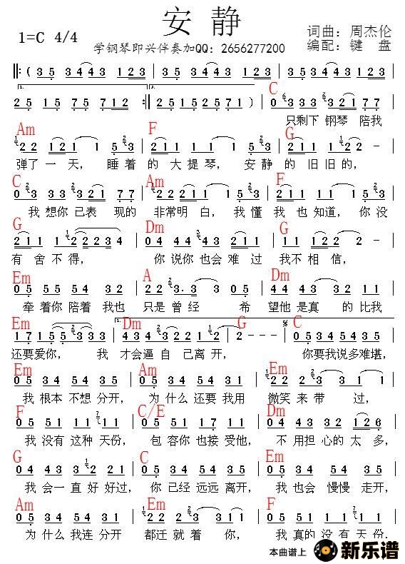 周杰伦演唱的安静歌词,安静最新曲谱.