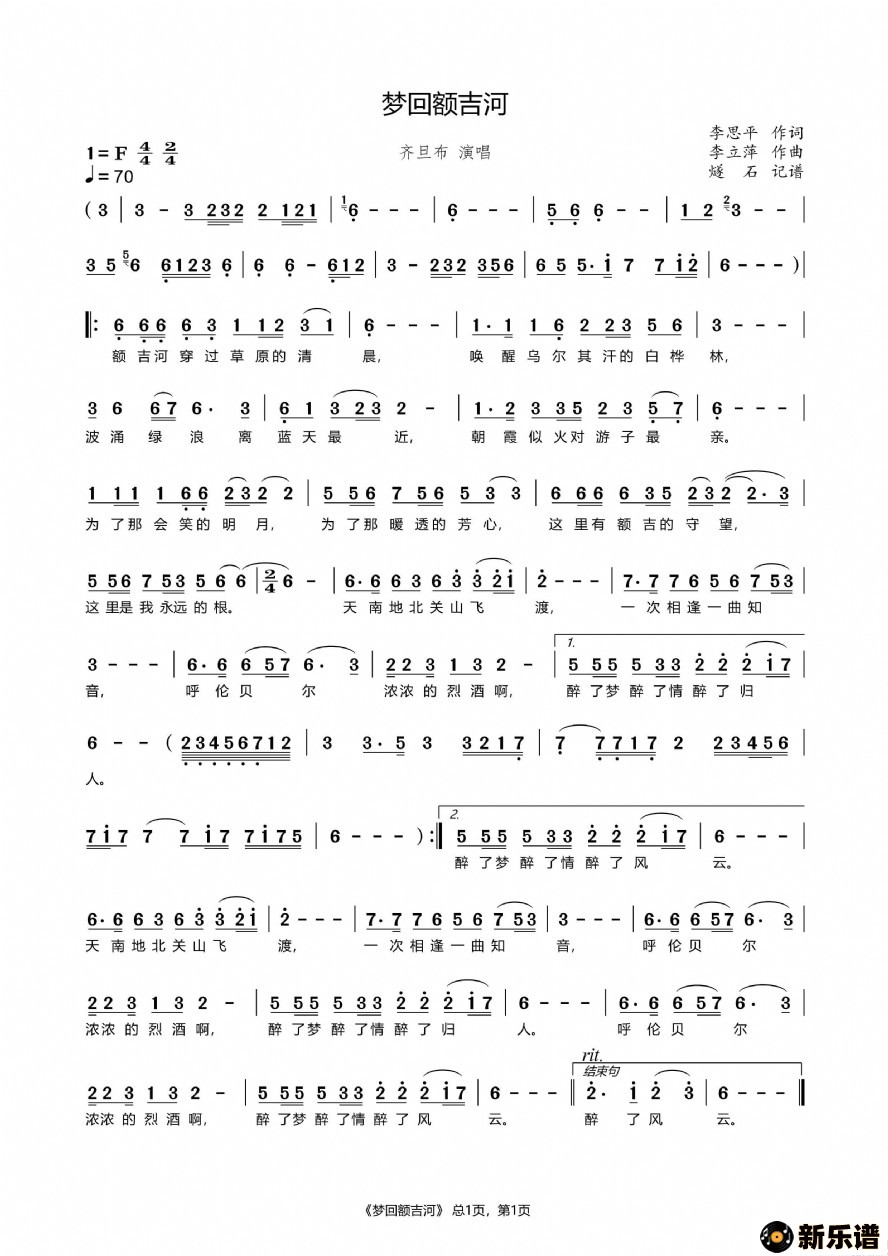 齐旦布演唱的梦回额吉河-齐旦布歌词,梦回额吉河-齐旦布最新曲谱.