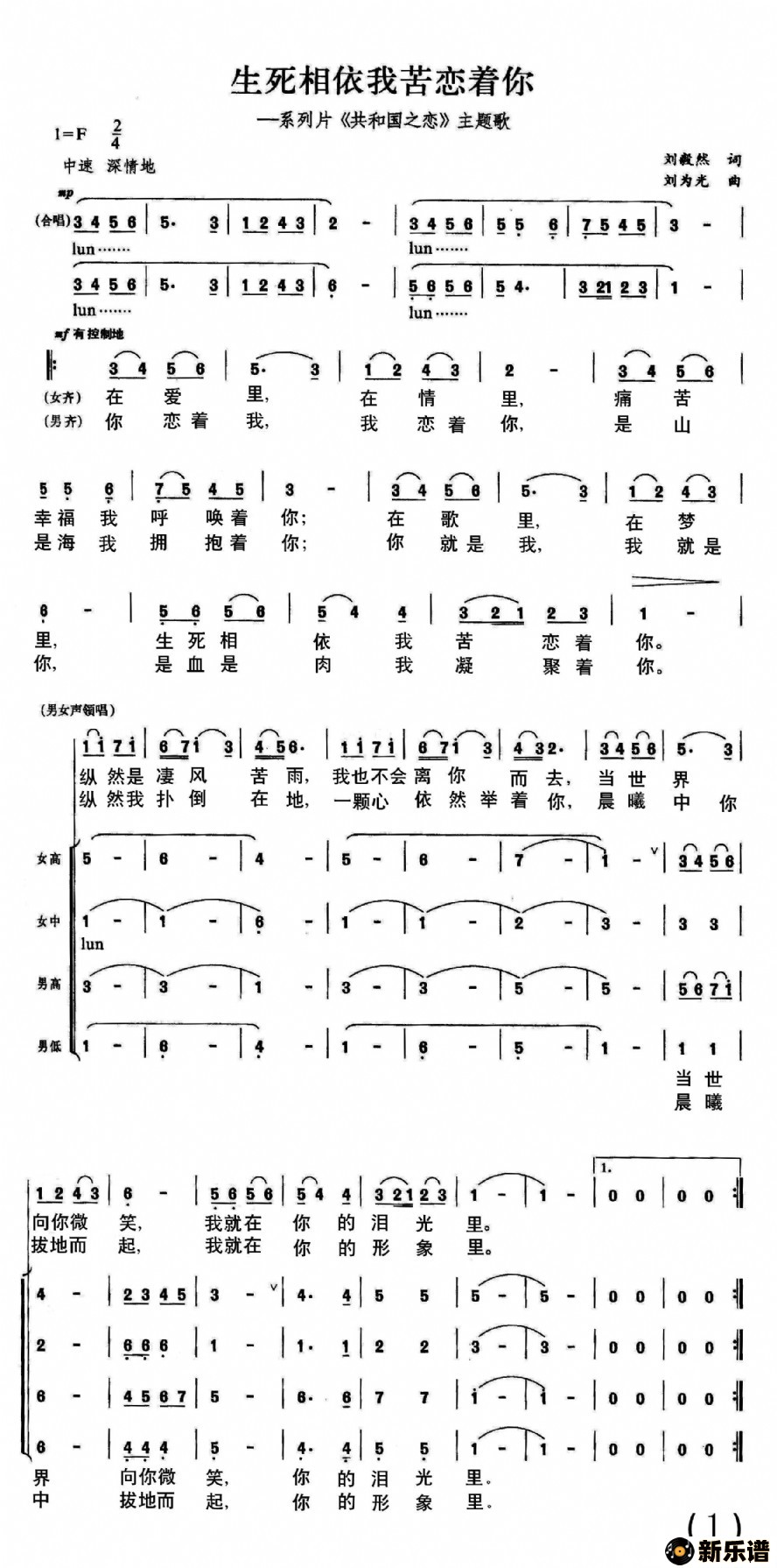 演唱的生死相依我苦恋着你歌词,生死相依我苦恋着你最新曲谱.