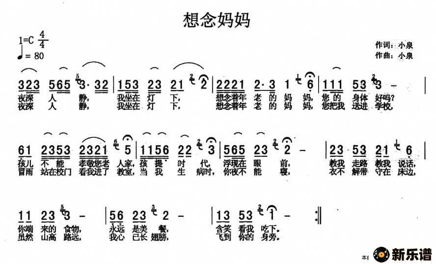 想念妈妈最新曲谱