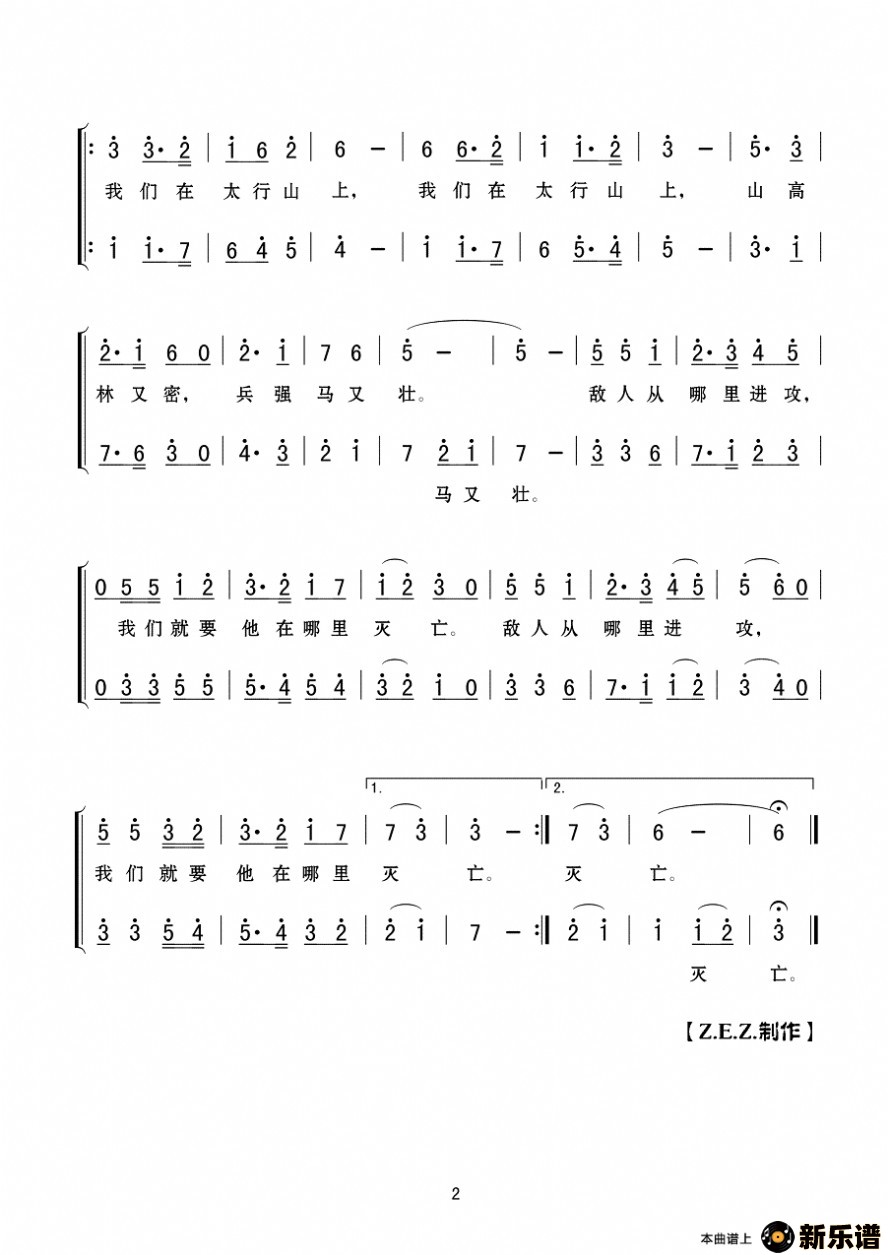 演唱的在太行山上歌词,在太行山上最新曲谱.