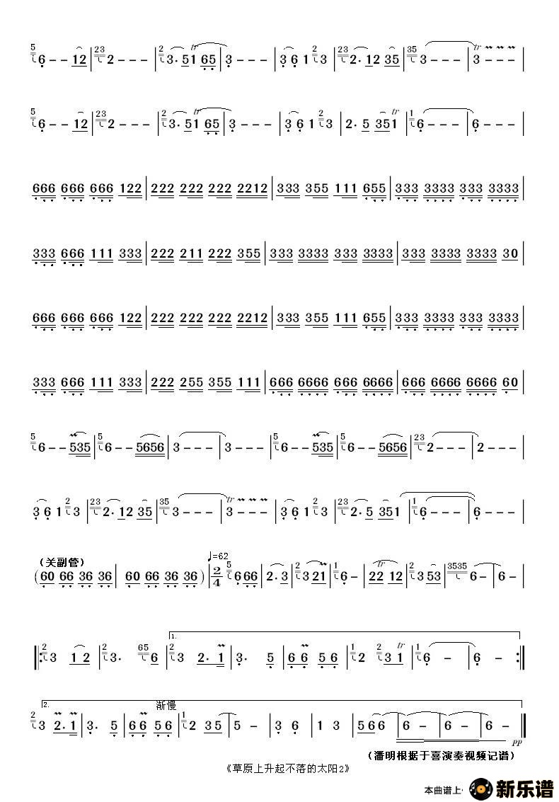 《草原上升起不落的太阳》最新曲谱 于喜