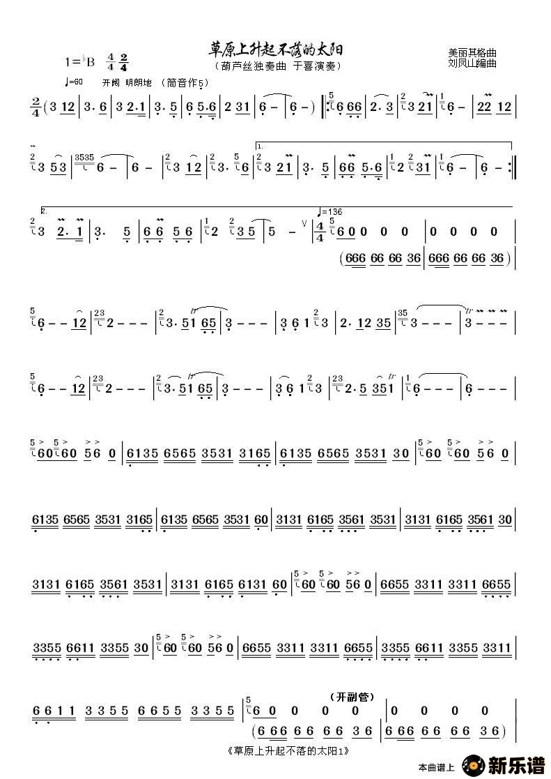 作曲:美丽其格曲 刘凤山编曲(葫芦丝曲谱)