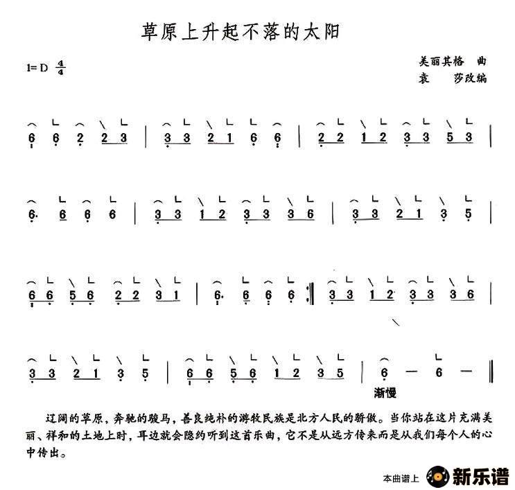 演唱的草原上升起不落的太阳歌词,草原上升起不落的太阳最新曲谱.