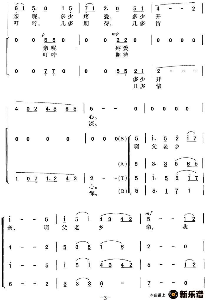 演唱的父老乡亲歌词,父老乡亲最新曲谱.