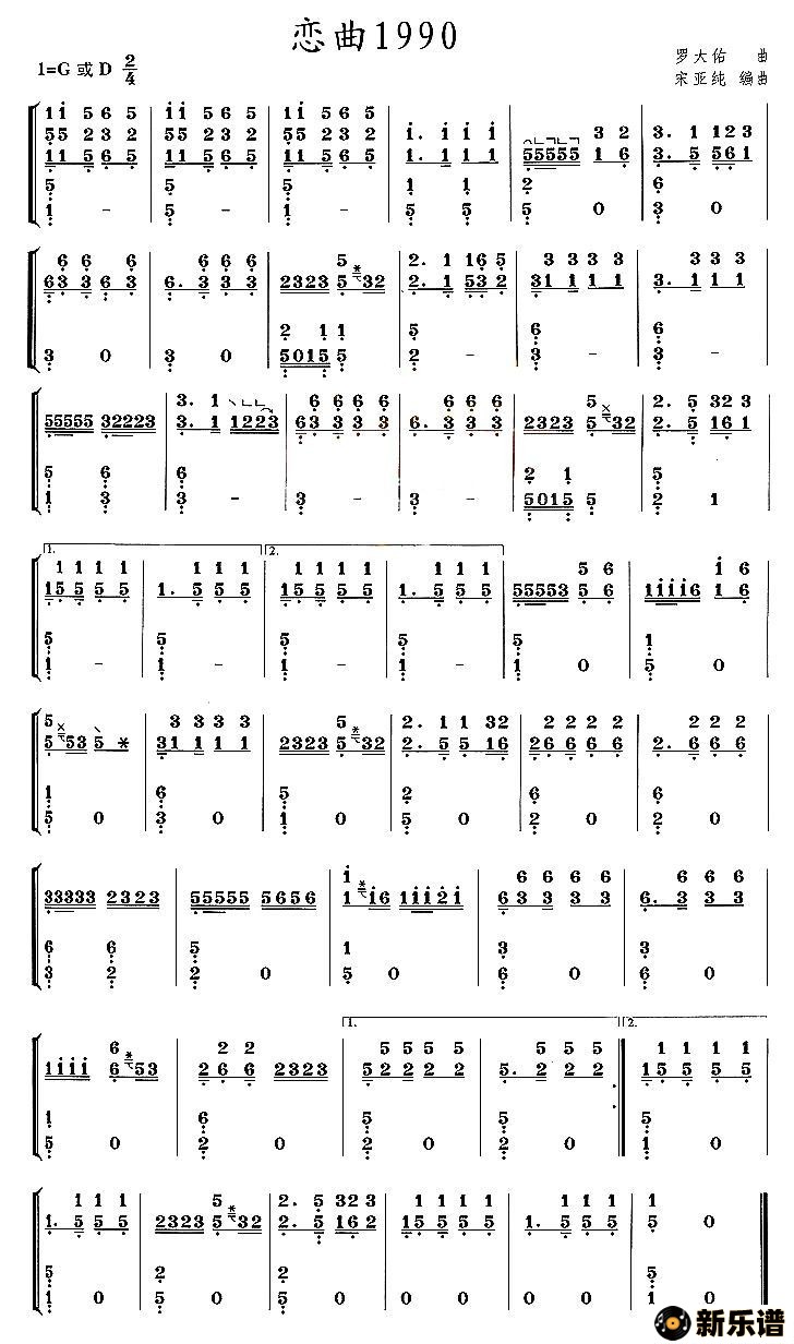 恋曲1990最新曲谱