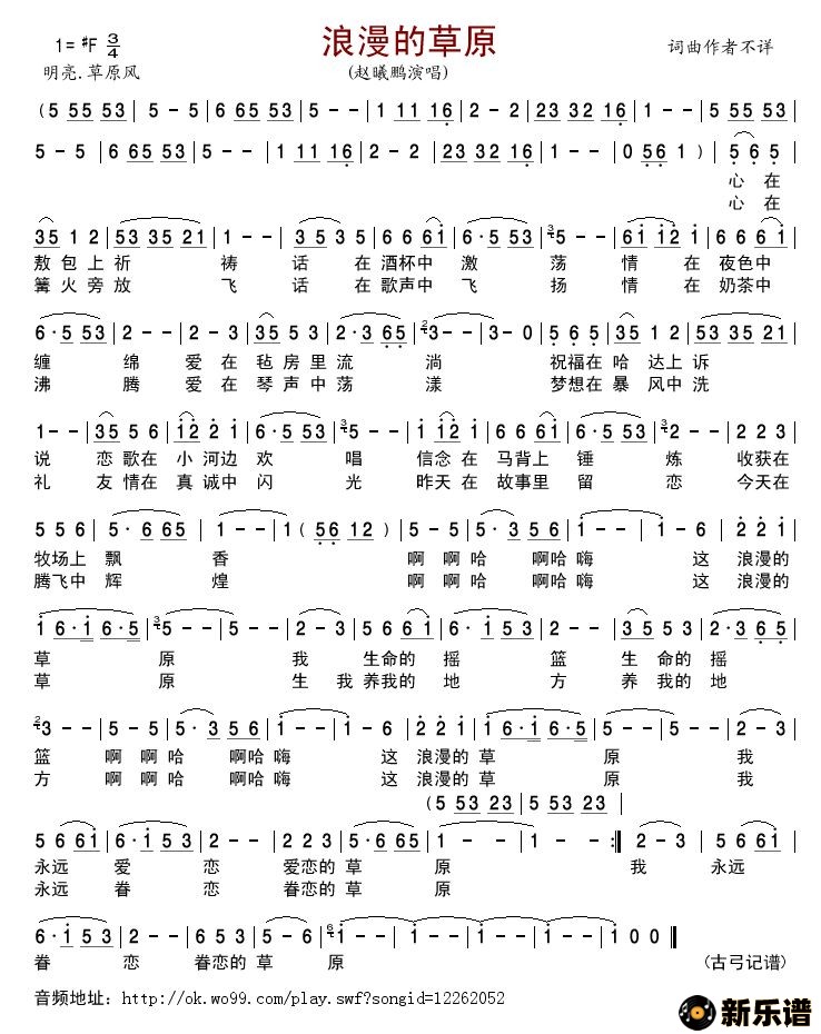 赵曦鹏演唱的浪漫的草原歌词,浪漫的草原最新曲谱.