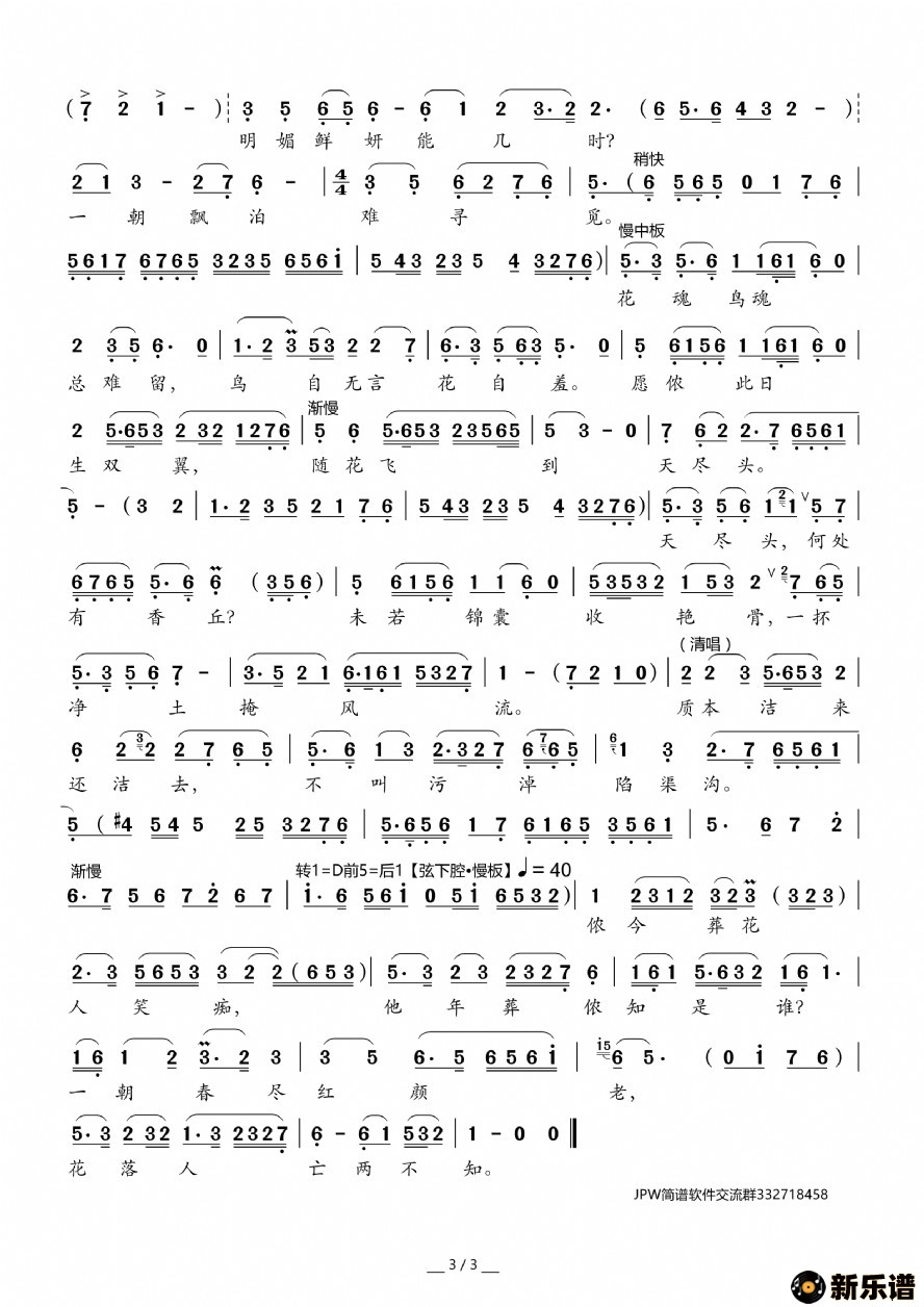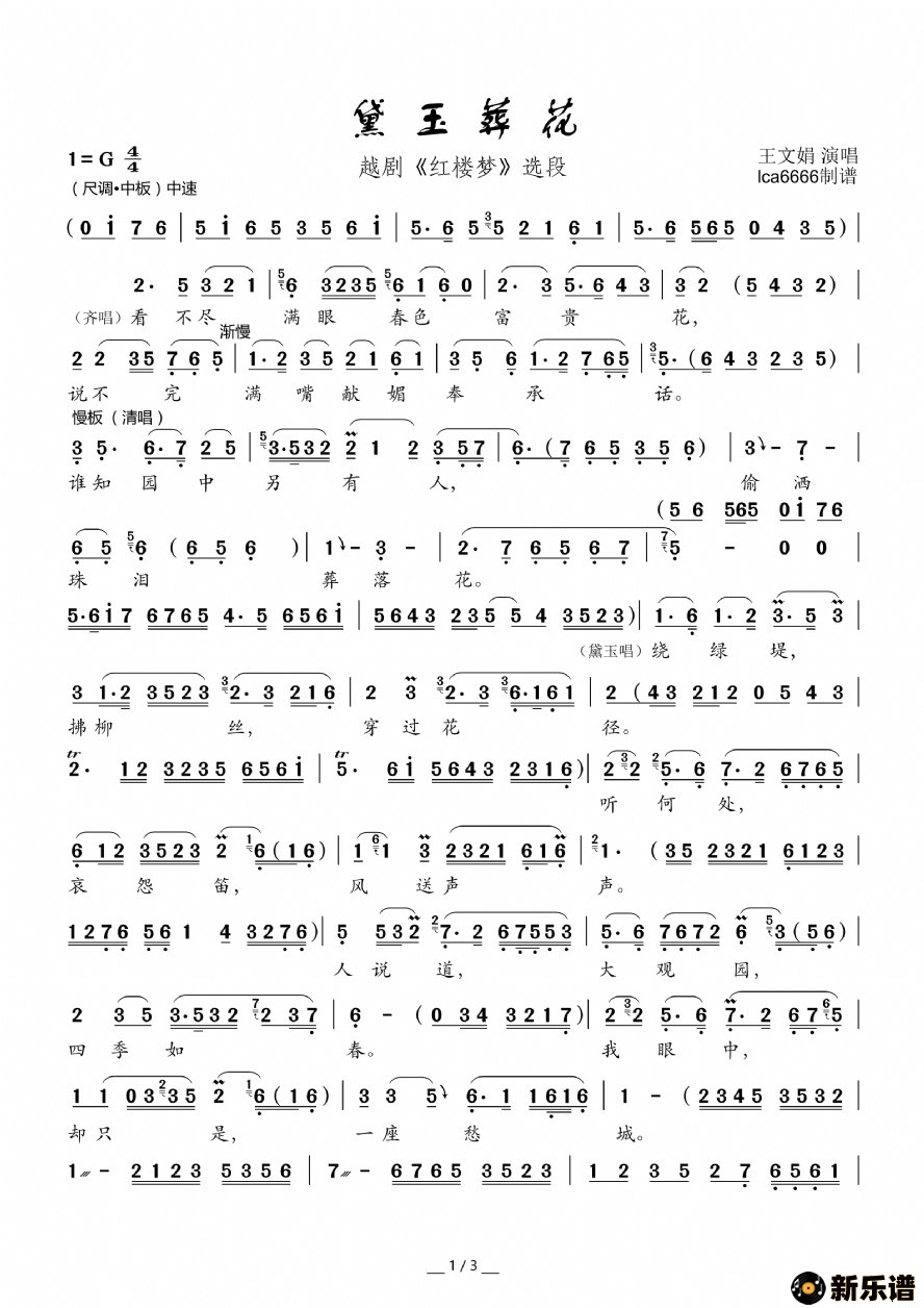 《黛玉葬花》最新曲谱 王文娟-简谱卡农制谱