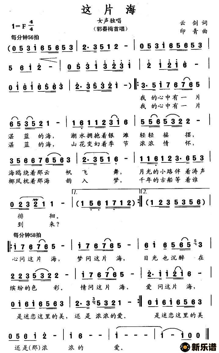 郭春梅演唱的这片海歌词,这片海最新曲谱.