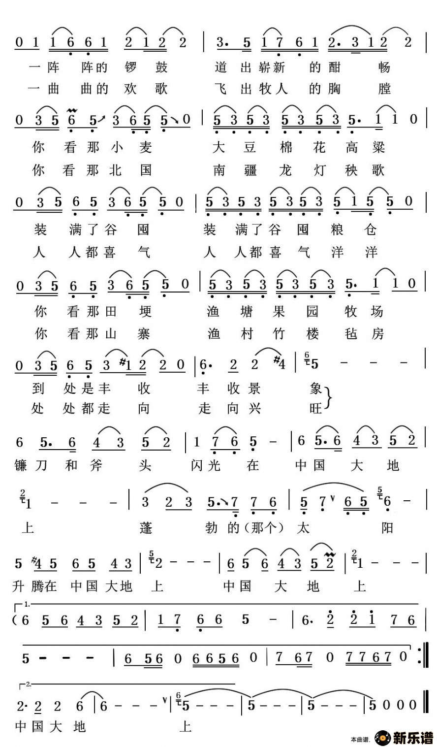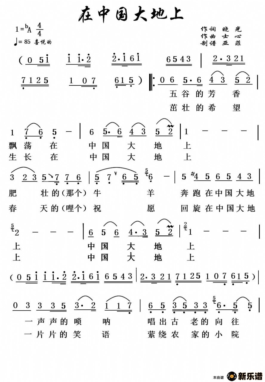 演唱的在中国大地上歌词,在中国大地上最新曲谱.