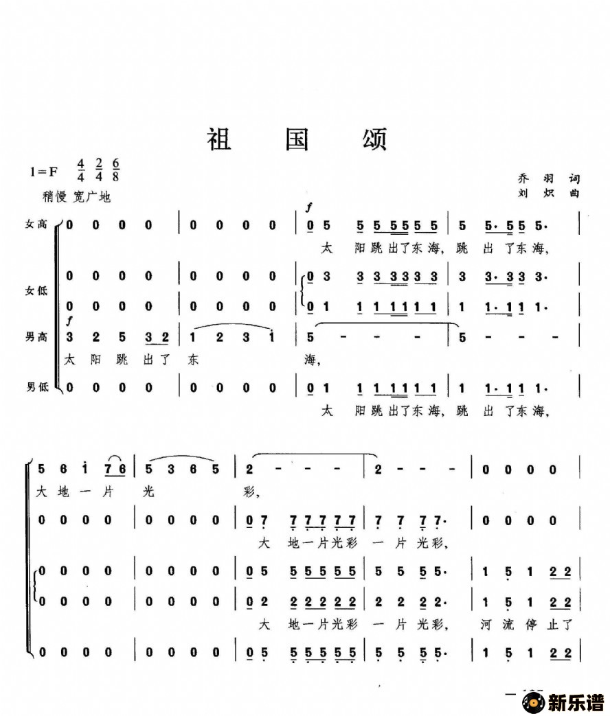 演唱的祖国颂歌词,祖国颂最新曲谱.