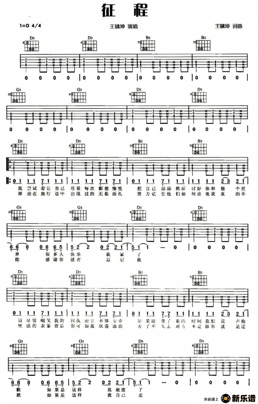 王啸坤演唱的征程歌词,征程最新曲谱.