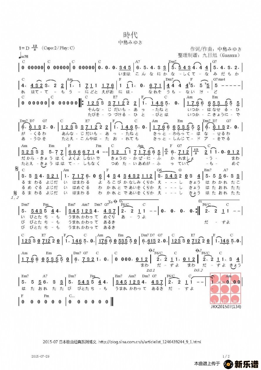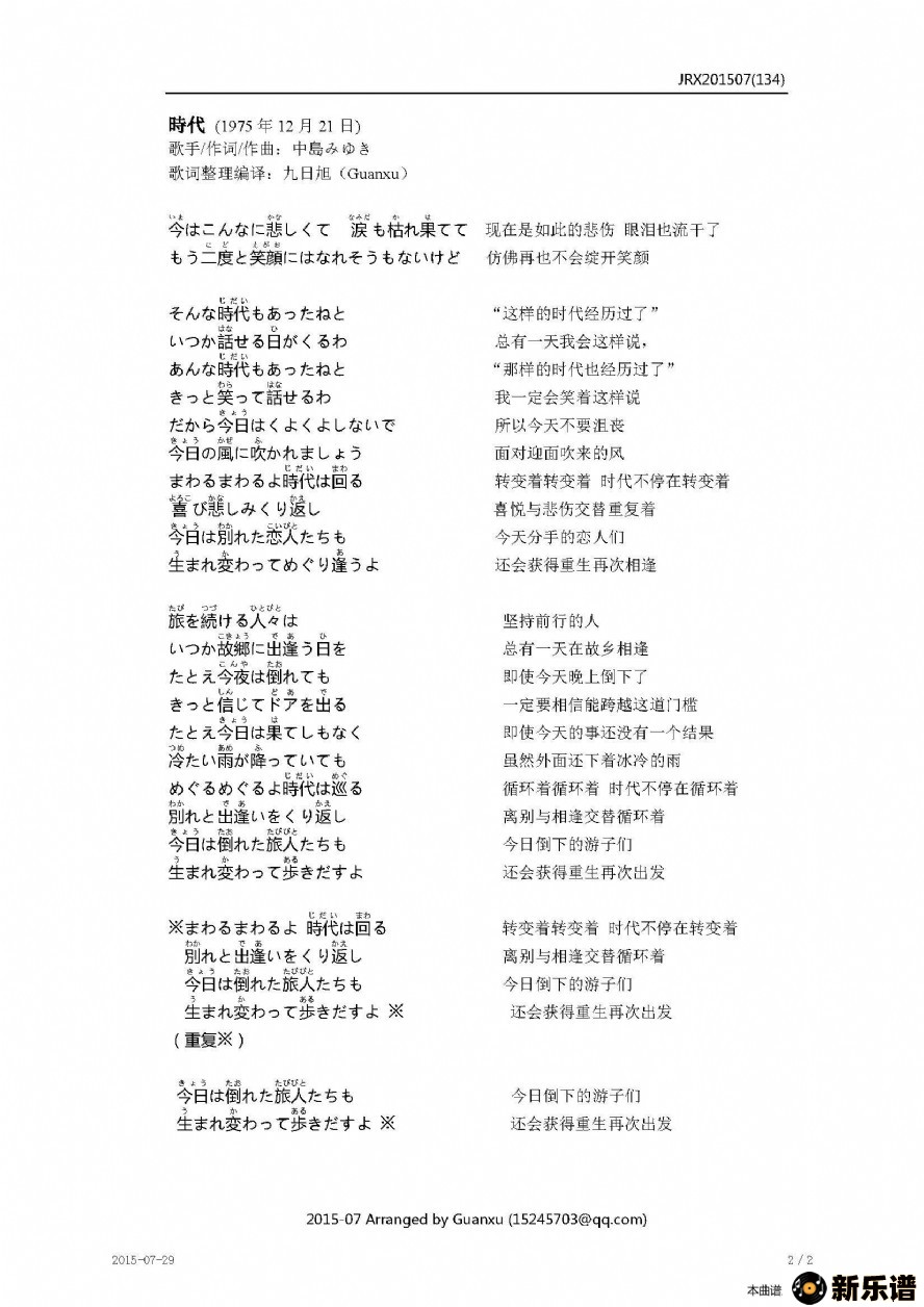 中岛美雪演唱的【日】時代歌词,【日】時代最新曲谱.
