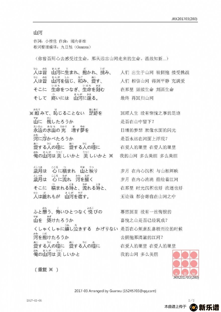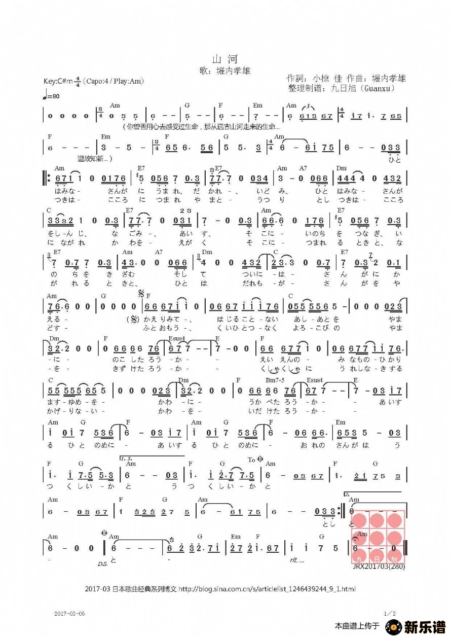 堀内孝雄演唱的【日】山河歌词,【日】山河最新曲谱.