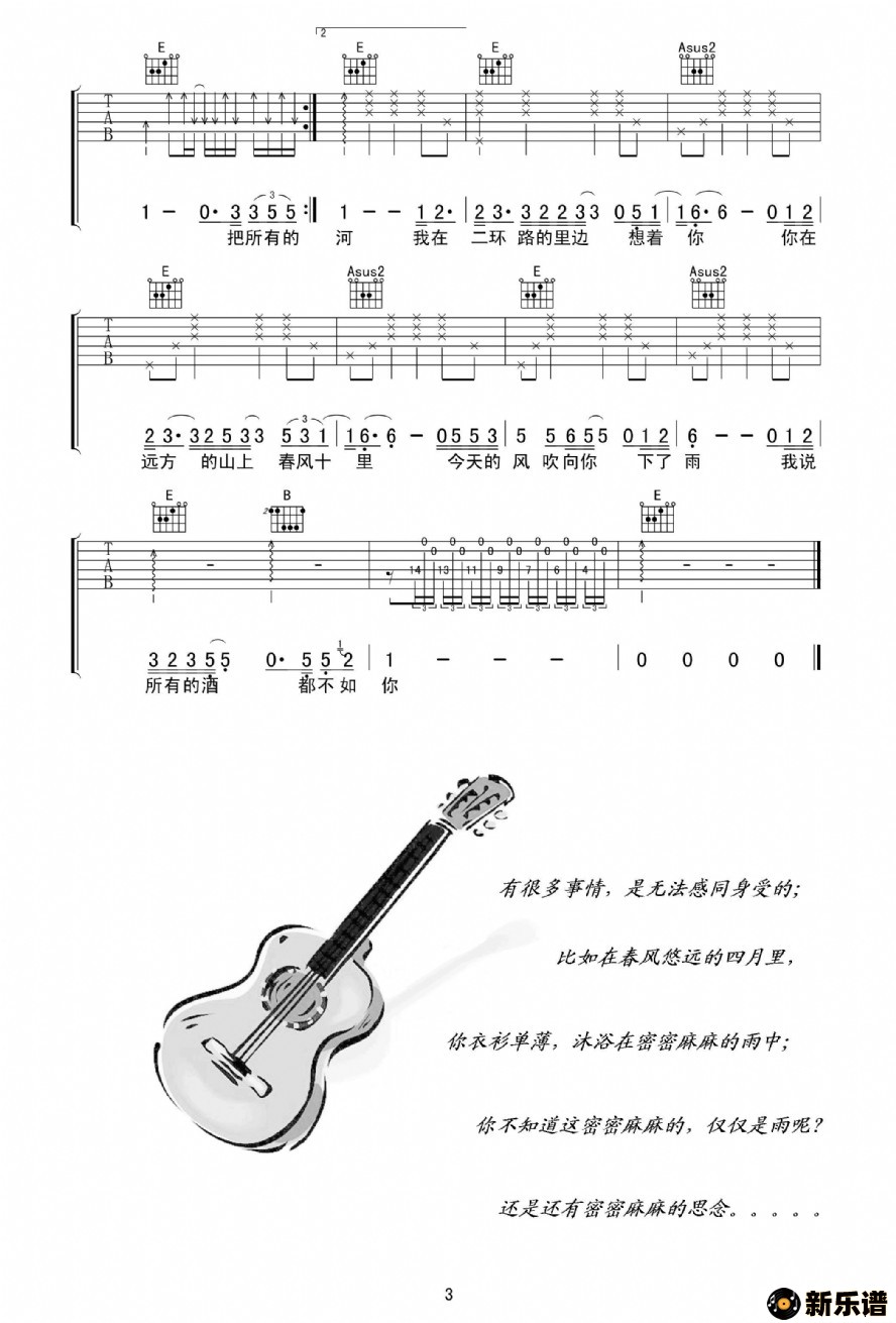 作词:倍倍 作曲:倍倍(高清弹唱六线谱E调)