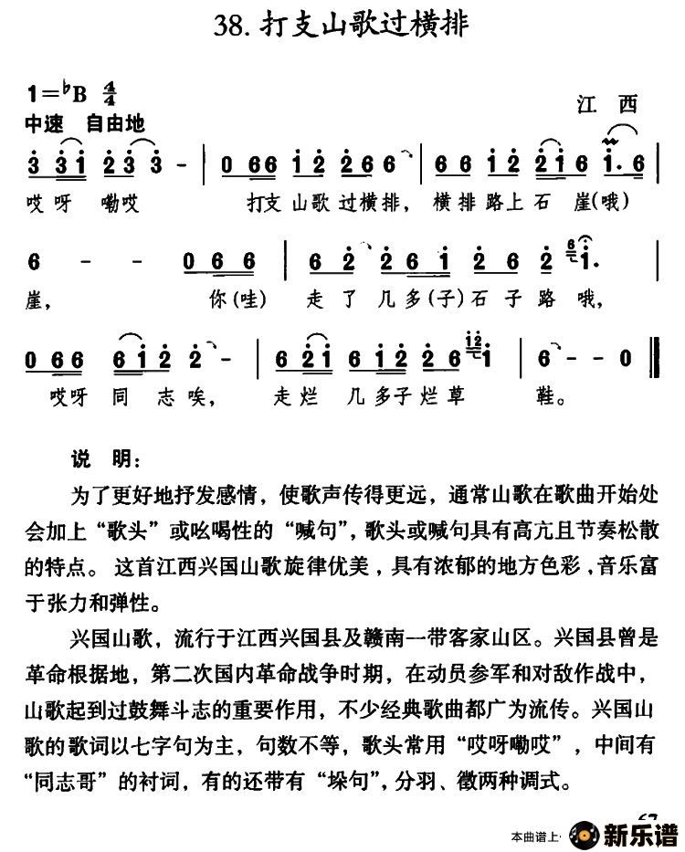 打支山歌过横排/ 相关曲谱