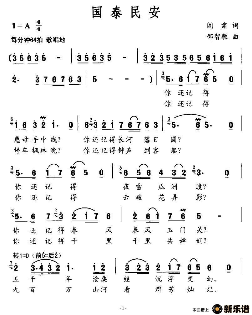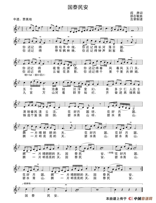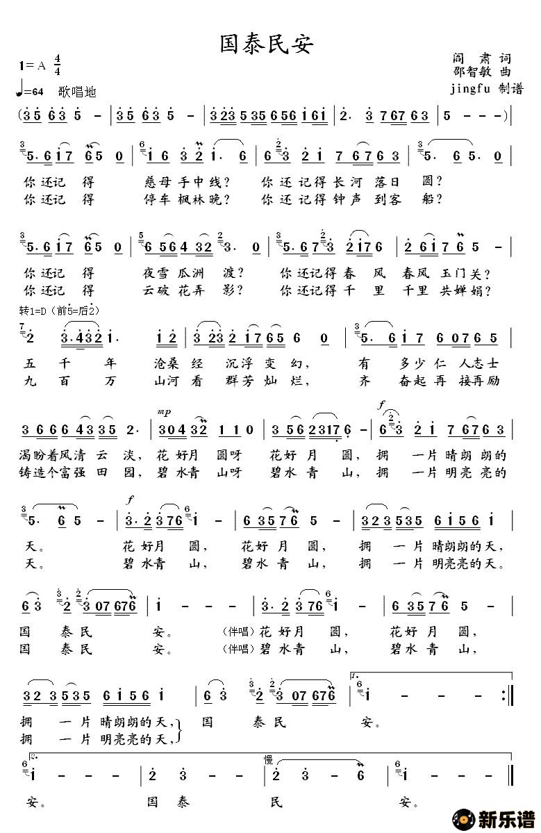 吕继宏演唱的国泰民安歌词,国泰民安最新曲谱.