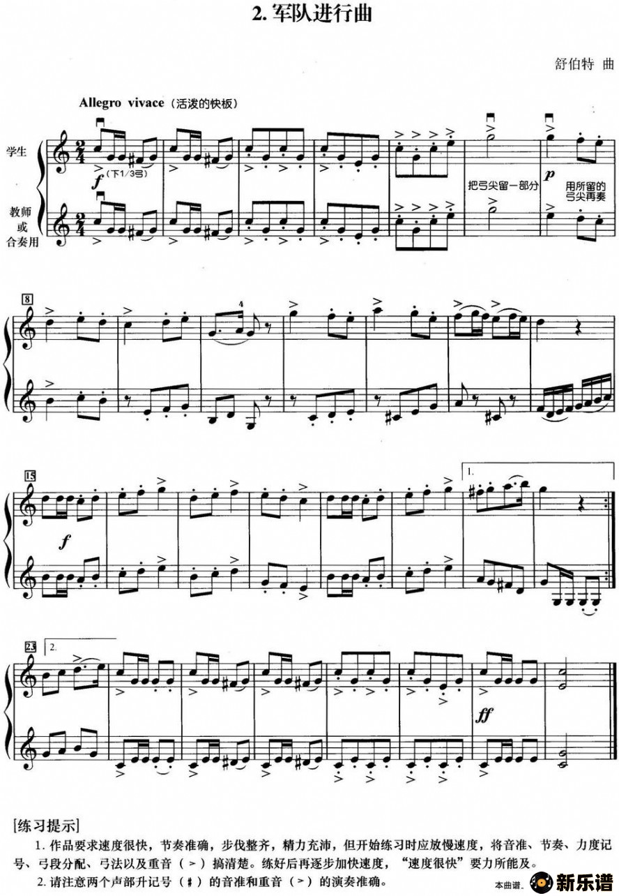 > 初级小提琴二重奏:军队进行曲最新曲谱