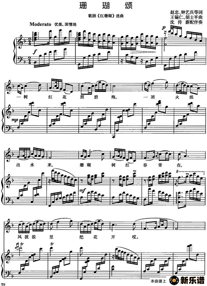 演唱的珊瑚颂歌词,珊瑚颂最新曲谱.