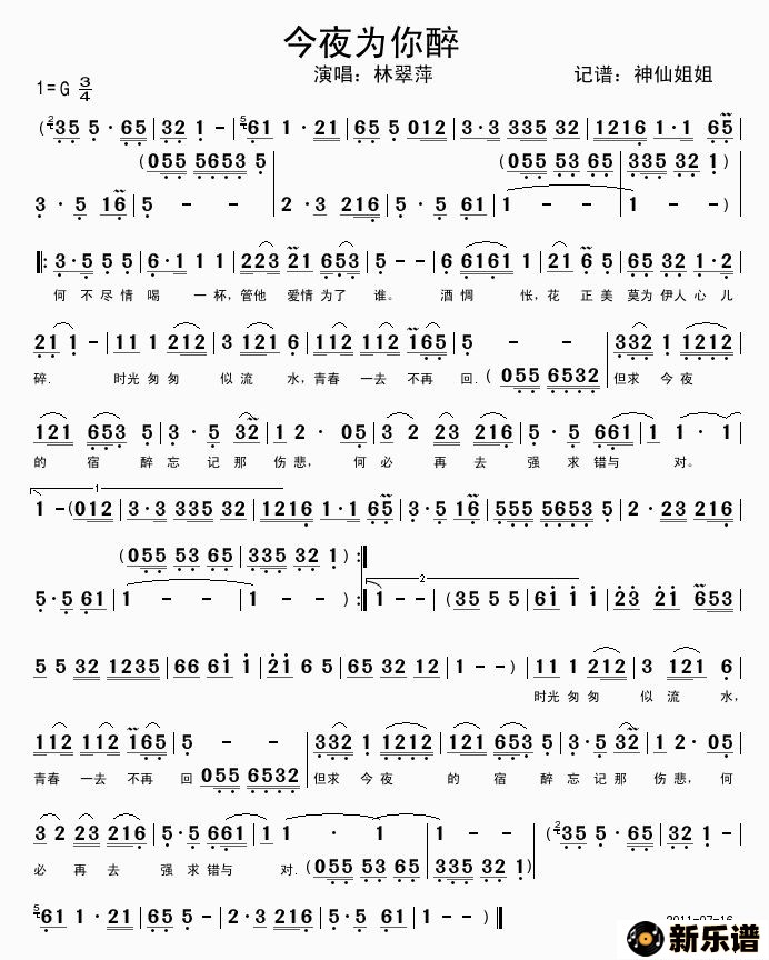 林翠萍演唱的今夜为你醉歌词,今夜为你醉最新曲谱.