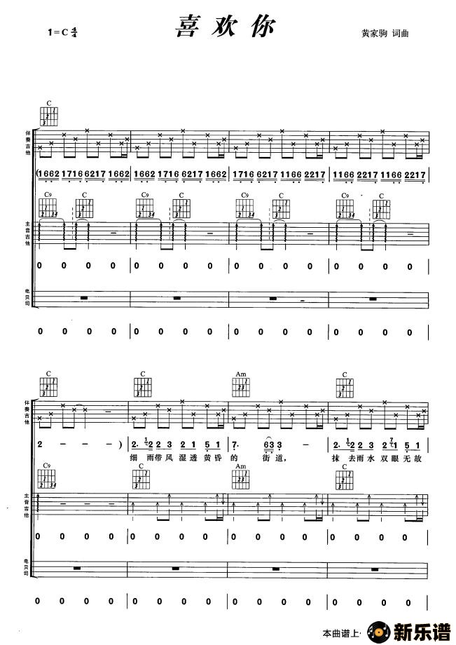 喜欢你最新曲谱