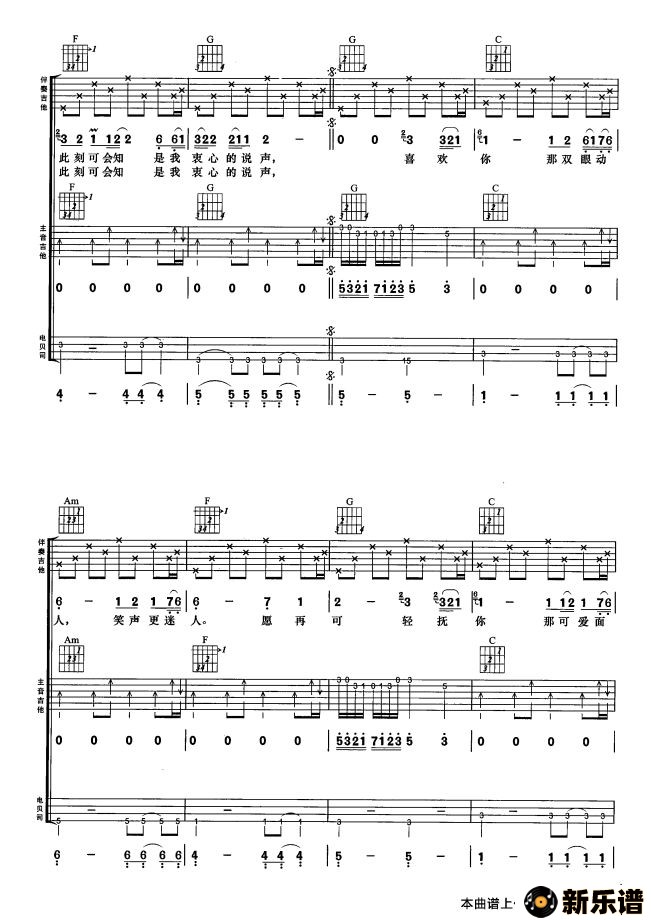 > 喜欢你最新曲谱