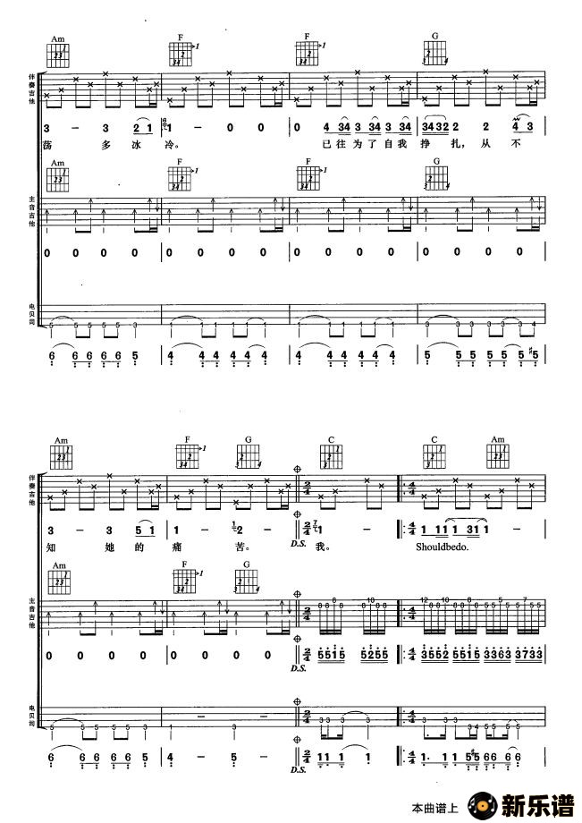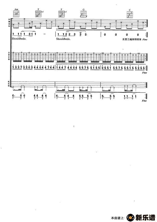 版本三:转自《缘分吉他》