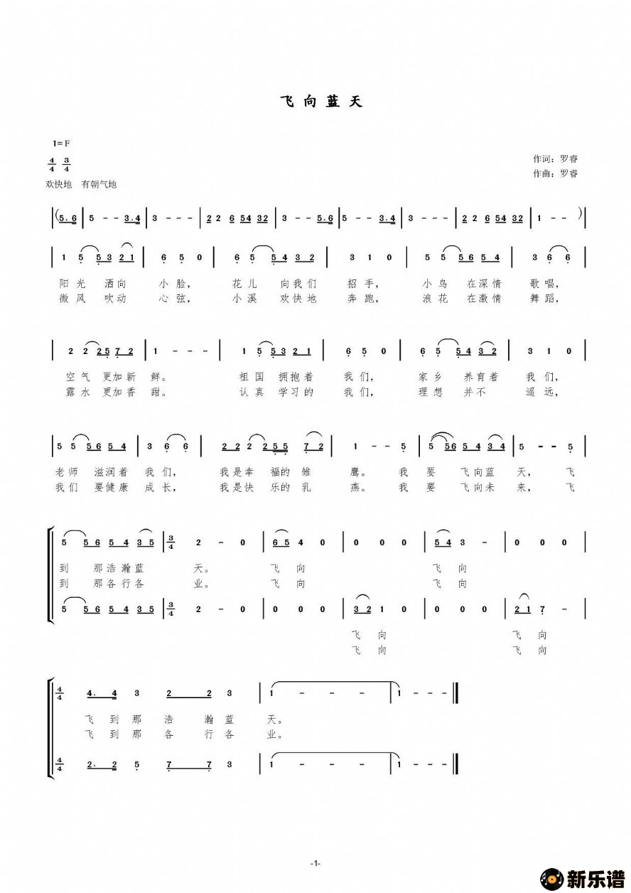 演唱的飞向蓝天歌词,飞向蓝天最新曲谱.