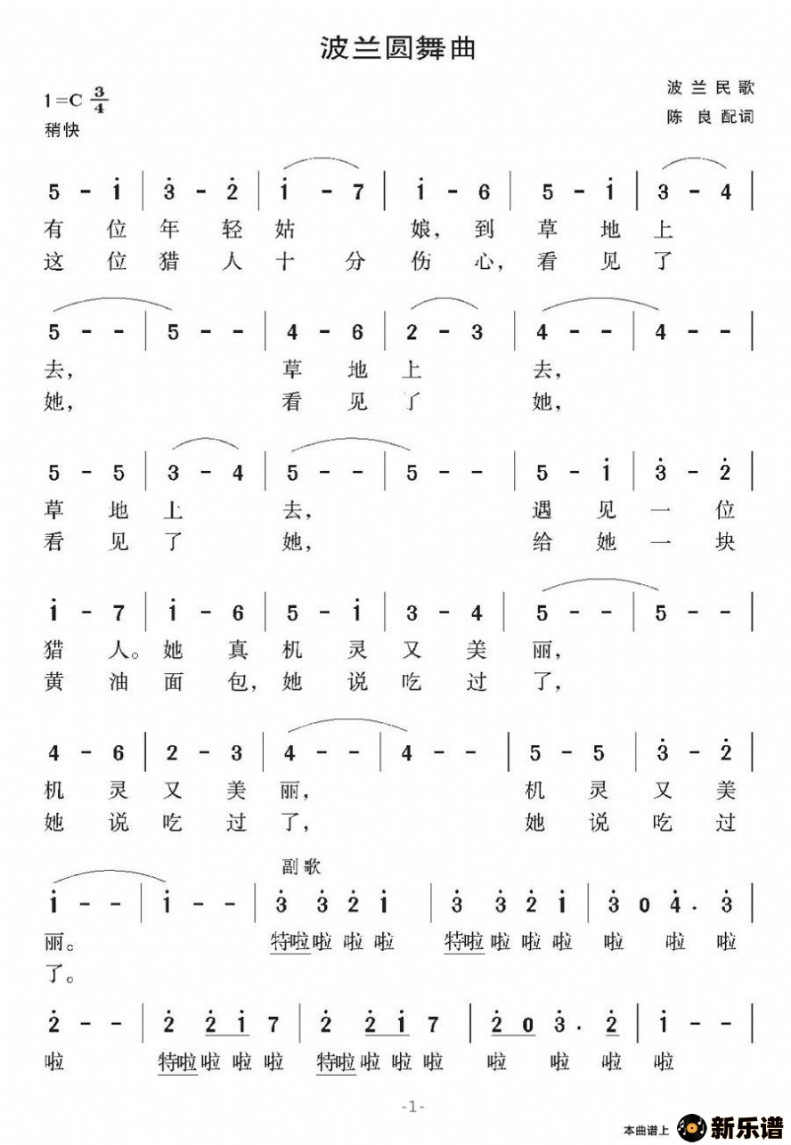 演唱的【波兰】波兰圆舞曲歌词,【波兰】波兰圆舞曲最新曲谱.