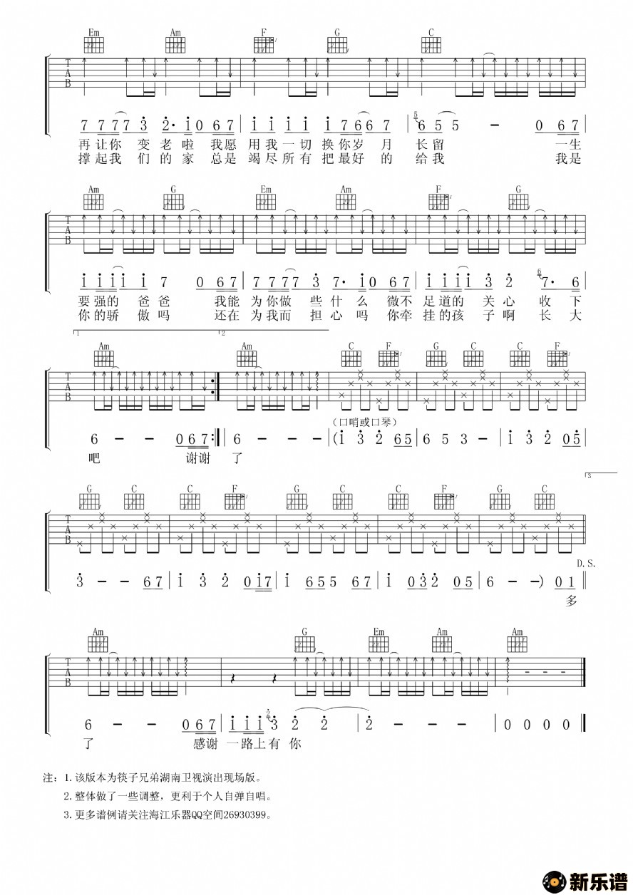《父亲》最新曲谱 筷子兄弟