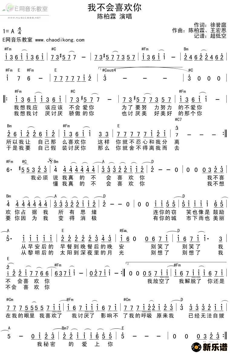 陈柏霖演唱的我不会喜欢你歌词,我不会喜欢你最新曲谱.
