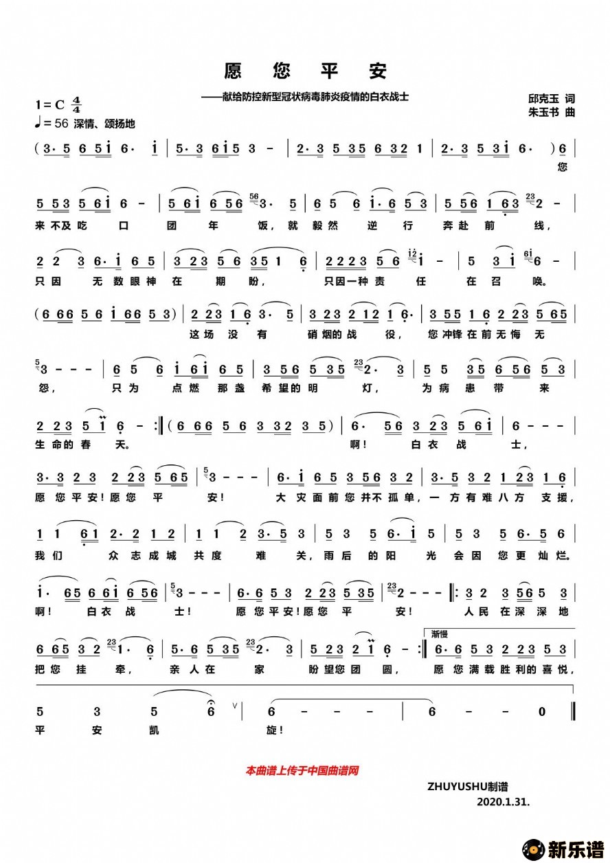 演唱的愿你平安歌词,愿你平安最新曲谱.