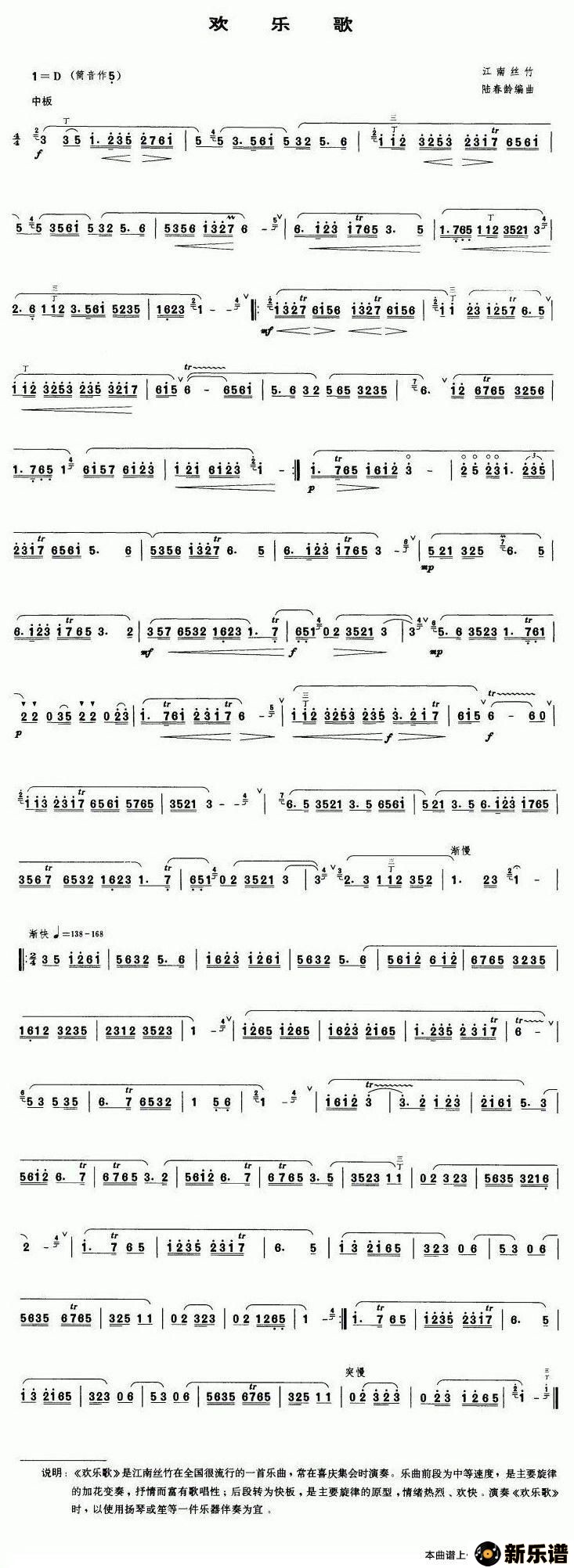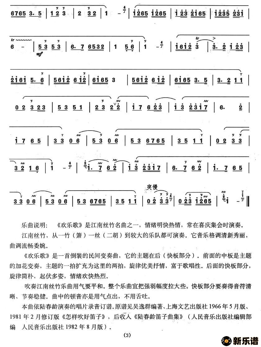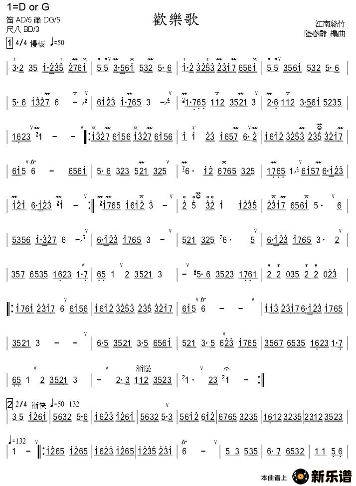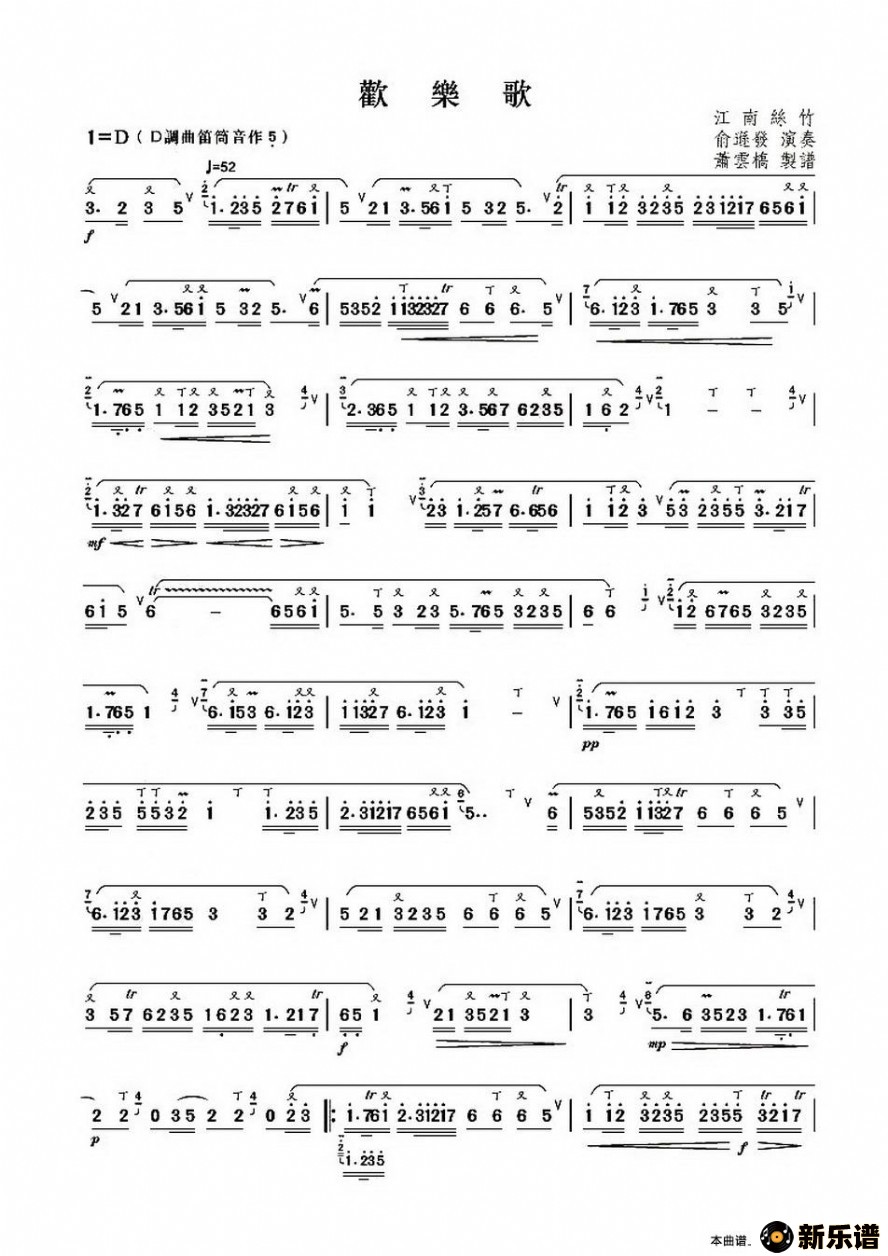 欢乐歌 演唱的欢乐歌歌词,欢乐歌最新曲谱. 版本一:选自蒋国基编著的《笛子入门教材》版本二:转自《乐谱库》版本三:转自《中国竹笛网》版本四:转自《萧雅集》版本五:本站上传版本六:版本一:谱友丝竹常清上传,江苏太仓五洋丝竹乐团演奏谱。