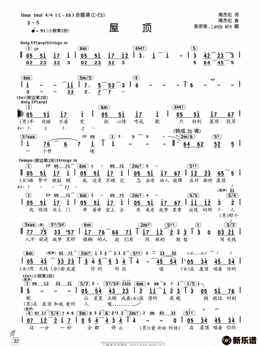 《屋顶》最新曲谱 吴宗宪/Landy Win