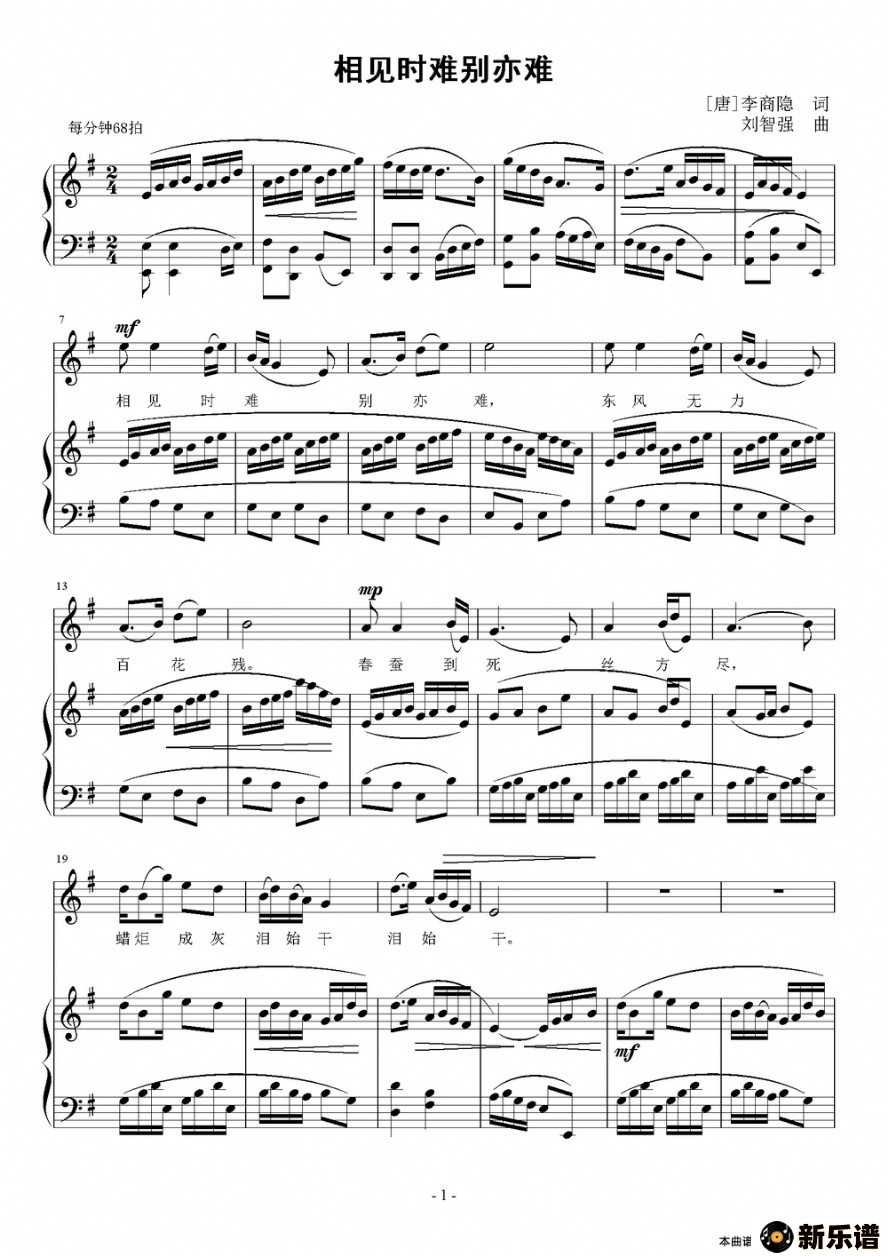 演唱的相见时难别亦难歌词,相见时难别亦难最新曲谱.